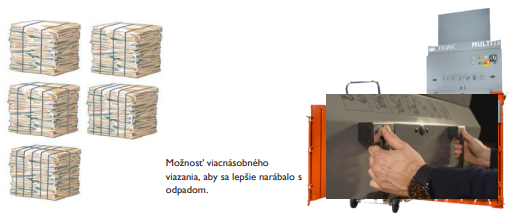 Vďaka predĺženému zdvihu piestu vznikajú pevné a hutné balíky s rozmermi 700 × 500 × 700 mm, ktoré dosahujú hmotnosť až 80 kg pri kartóne a približne 100 kg pri plastových materiáloch. Tým sa výrazne obmedzuje počet potrebných odvozov odpadu.