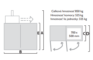 Každá komora je vybavená vrchným plnením, ktoré zabezpečuje jednoduché vkladanie odpadu. Počas lisovania v jednej komore je možné druhú okamžite používať, čo umožňuje plynulú prevádzku bez zbytočných prestojov.